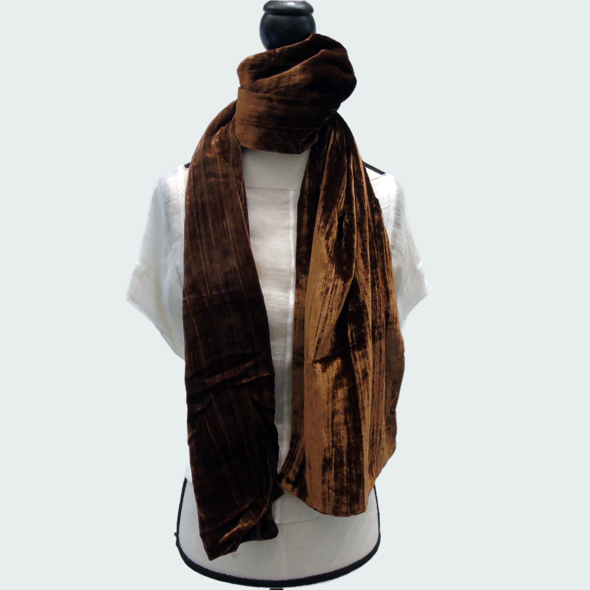 Questa sciarpa elegante da donna è realizzata in velluto di alta qualità con una texture striata che aggiunge un tocco di raffinatezza e stile al tuo abbigliamento. Il velluto offre una sensazione morbida e confortevole al tatto, rendendola perfetta per le stagioni più fredde. Il colore marrone, caldo e avvolgente, è versatile e si abbina facilmente a una varietà di outfit, dal casual al formale. Le dimensioni generose della sciarpa permettono di avvolgerla comodamente intorno al collo, garantendo calore e comfort.
